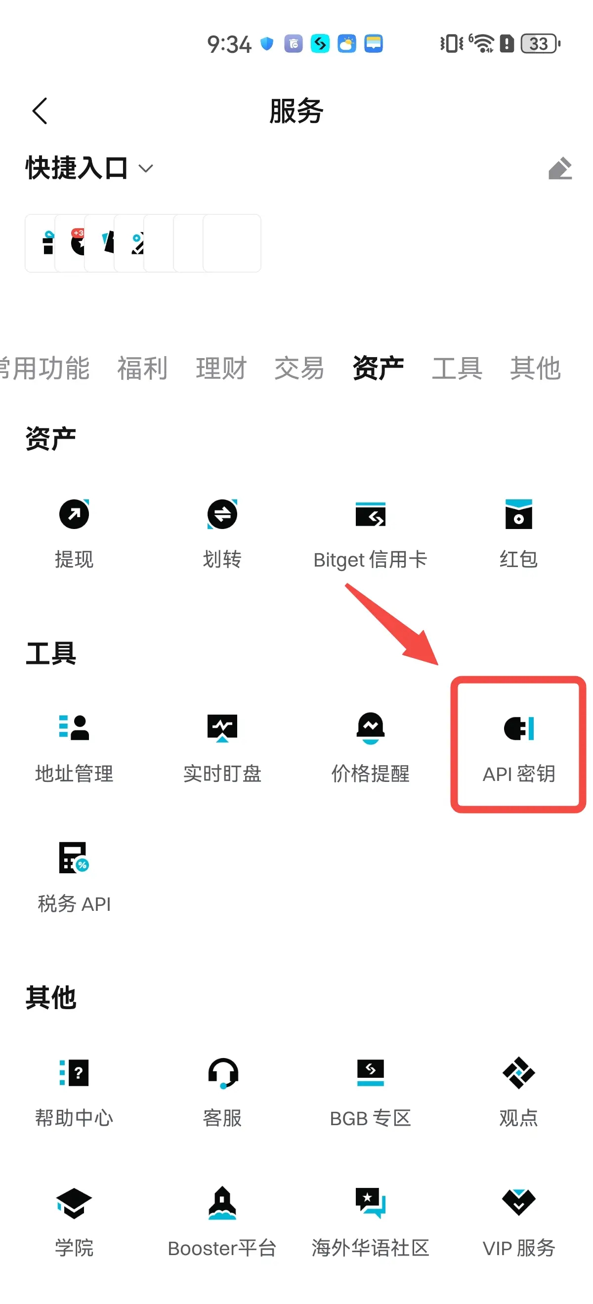 Bitget 서비스를 열고 API 키를 클릭하세요.