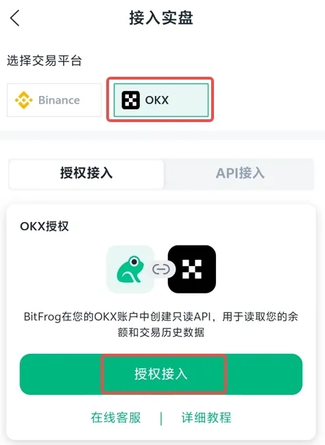 6bbad73340e13f17291254b1fabeee1f.webp 참고: OKX는 Oauth를 통해 인증되므로 일반 Api Key보다 보안이 훨씬 안전하므로 사용자는 Api Key 분실로 인한 자금 손실에 대해 걱정할 필요가 없습니다.