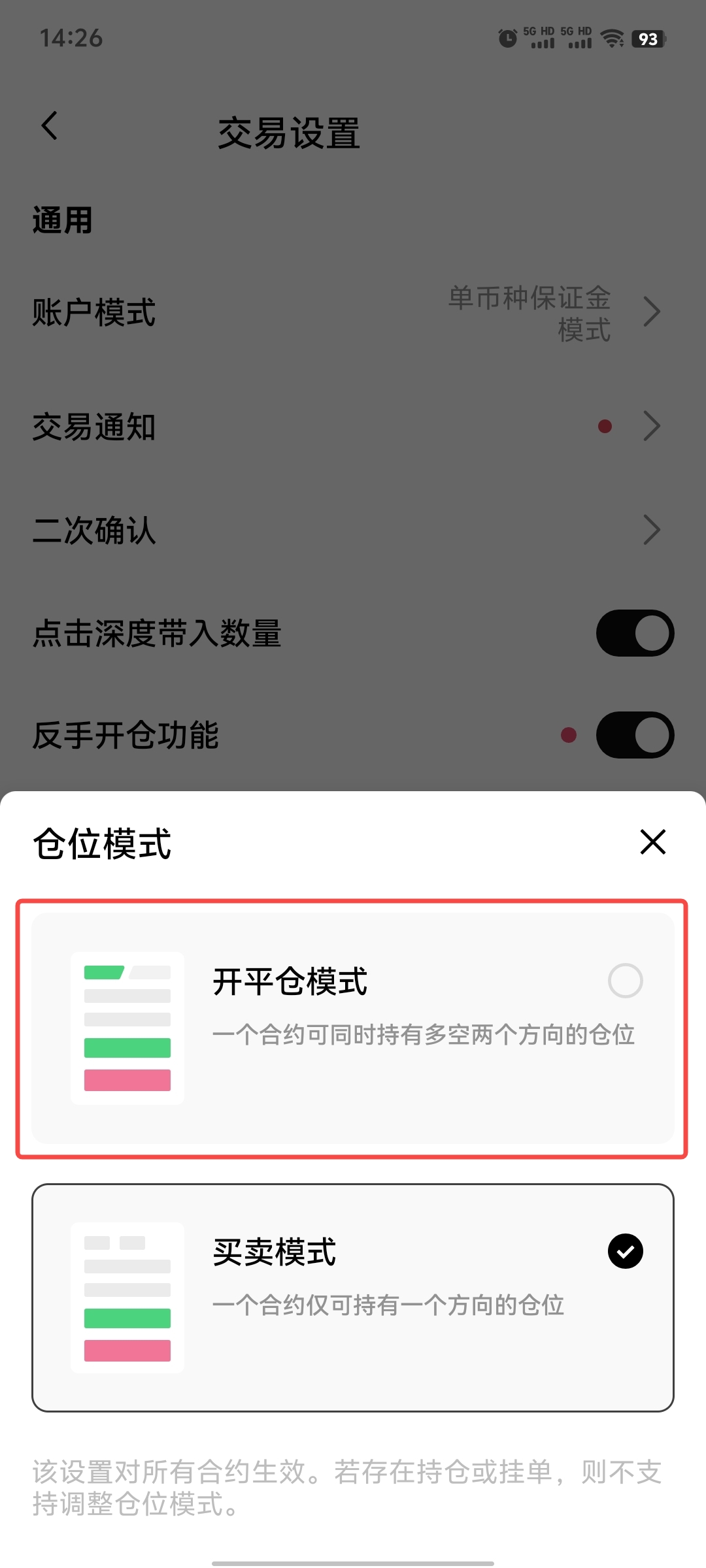 참고: 포지션 개시 및 청산 모드를 수정하지 않은 경우 주문을 받을 수 없습니다(주문 따르기).