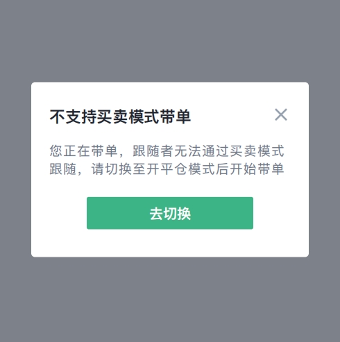 귀하의 포지션 모드가 매수 및 매도 모드인 경우 주문이 실패하게 됩니다. 마찬가지로 팔로어가 매수 및 매도 모드를 사용하면 주문이 실패하게 됩니다.